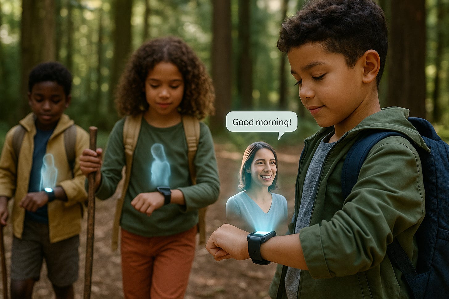 In a quiet forest, three kids walk together — laughing, exploring, free. But there’s something different about this hike.